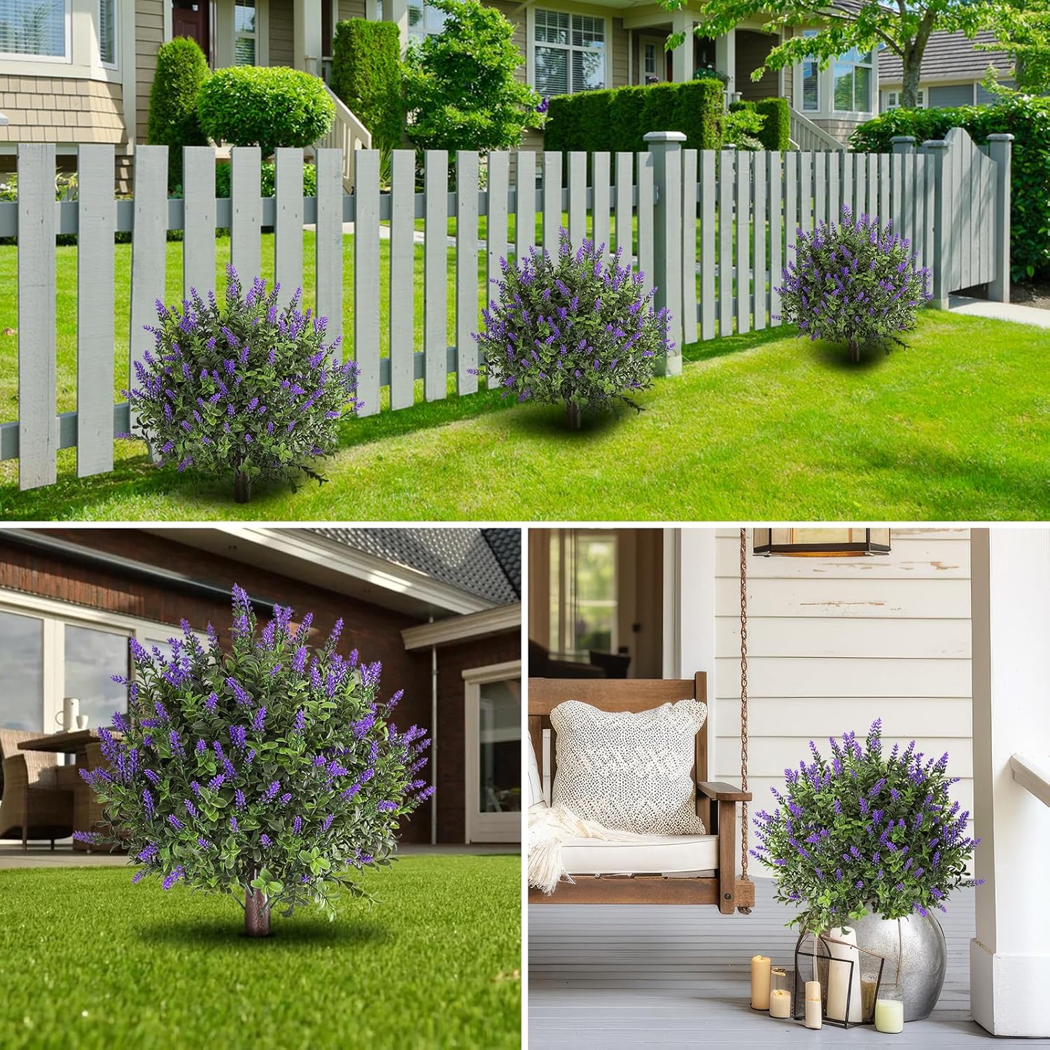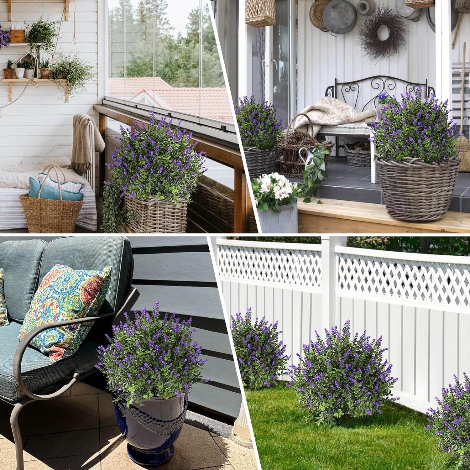LikSoor 21 Bundles Artificial Outdoor UV Resistant Flowers No Fade Fake Outside Flowers Plastic Greenery Faux Shrubs Garden Porch Window Box Home Decoration(Purple)