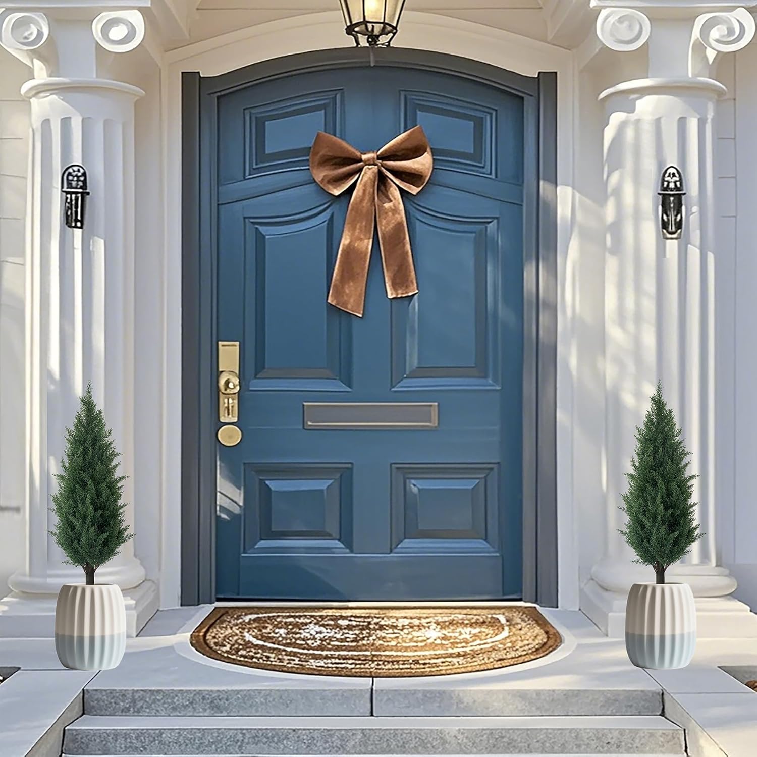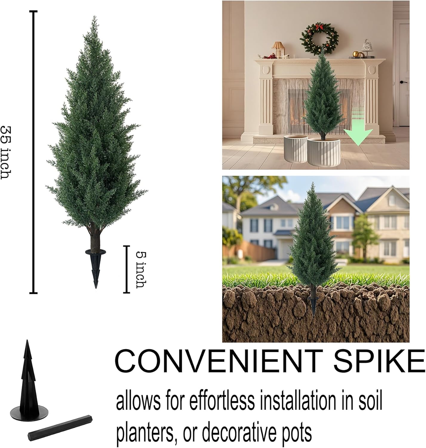 • Packaged for Your Convenience: The package includes 2 artificial cedar topiary trees with ground plugs for easy setup; Standing at a total height of about 35 inches, with a tree height of 30 inches and ground plugs measuring 4.9 inches, this artificial cedar topiary tree fits perfectly in home or office spaces; The good size offers ample flexibility for installation.