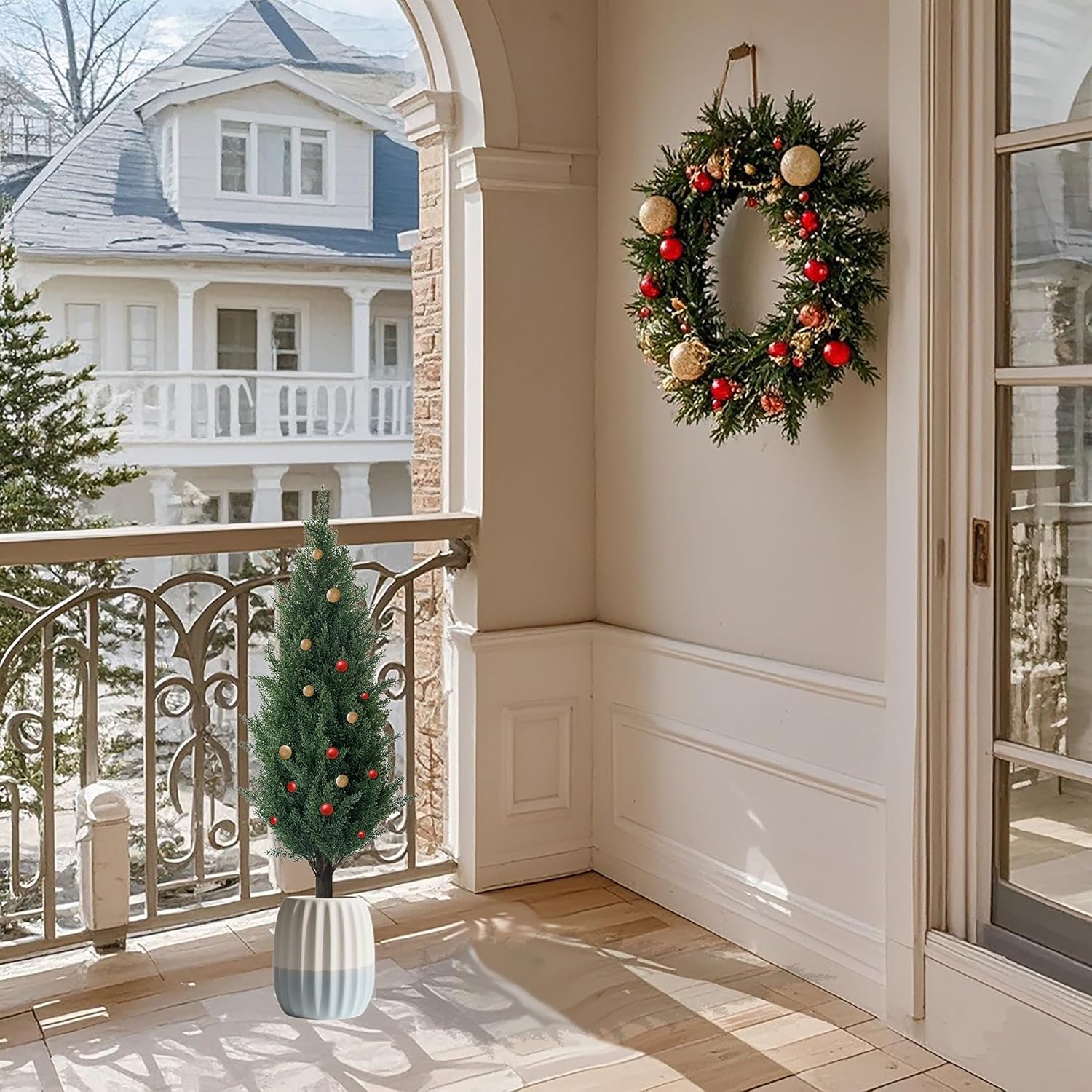 • Indoor Outdoor Decor: Place the artificial plants in a corner of your living room for a natural accent, or use them to frame your front door for a welcoming entrance. Set topiary trees either side of your front door or garage; keep your home, garden, back yard, entryway, office, reception area or business looking crisp and sharp. Also making a housewarming gift as well.
