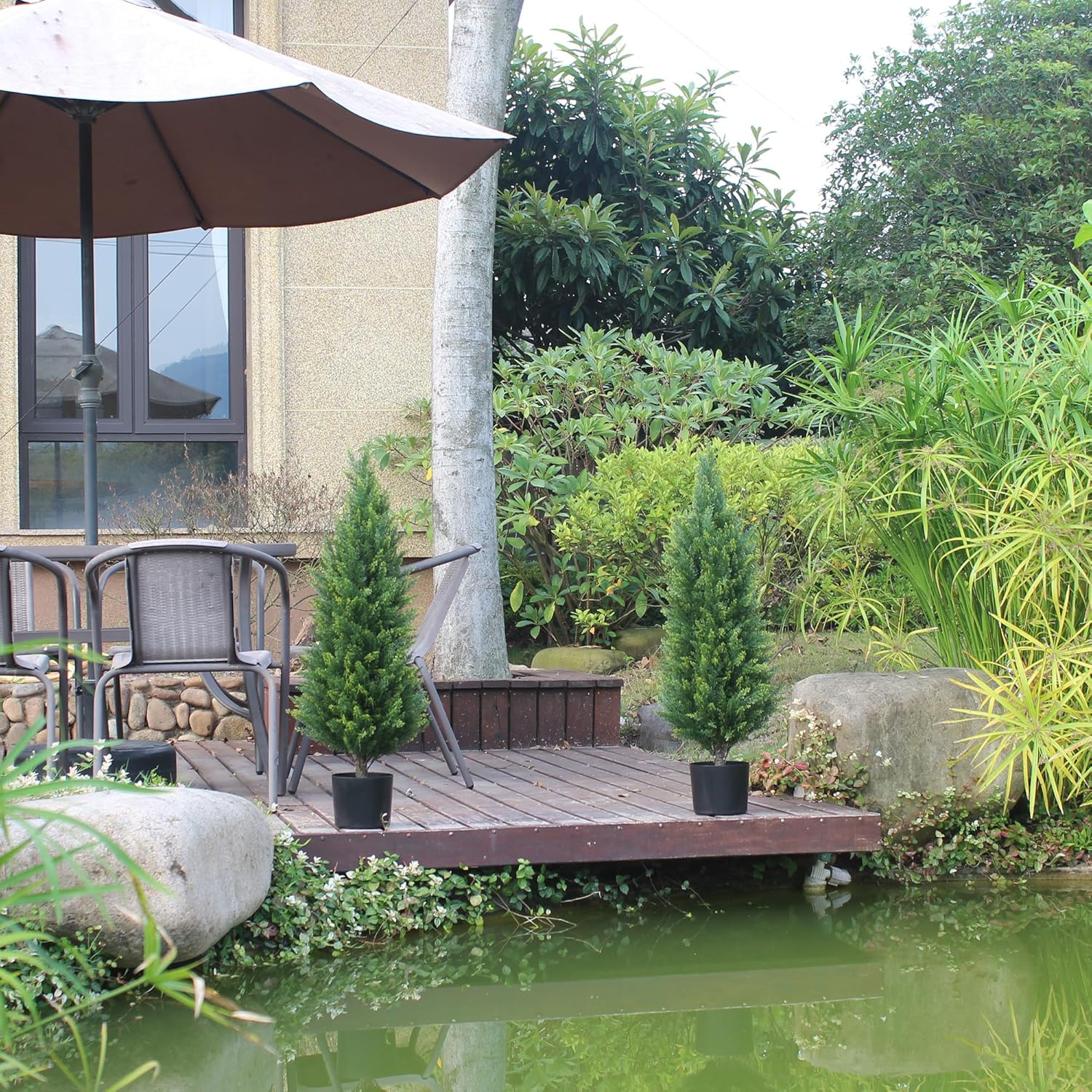 - 【Out of the Box, No Assembly Required】Our artificial cedar topiary trees do not need to be reassembled, just open the package and you can decorate your home. Tips: There may be some deformation of the leaves during transportation, need some re-shaping by hand. We suggest to placing it in bigger decorative planter to make the artificial tree be more perfect.