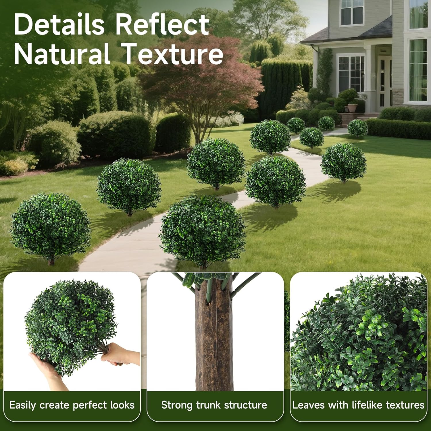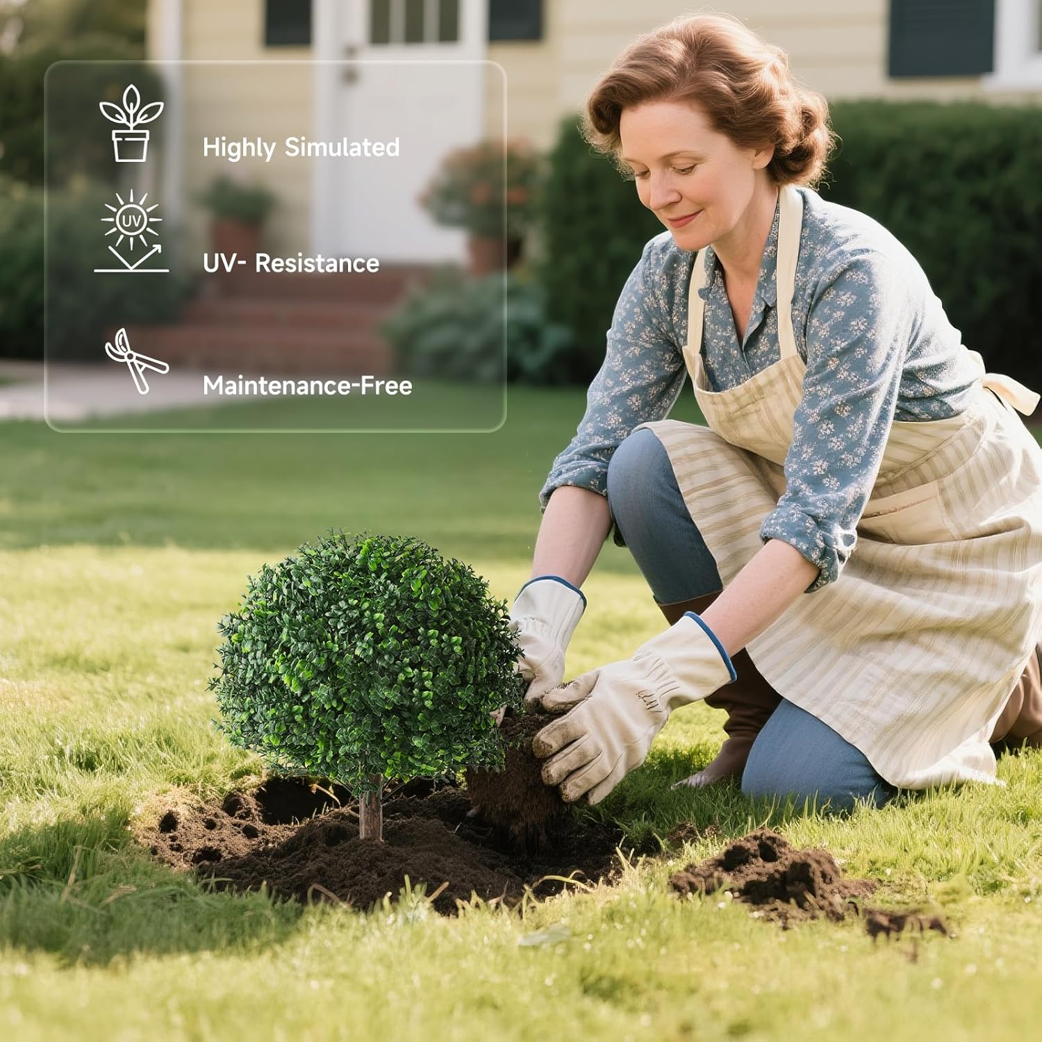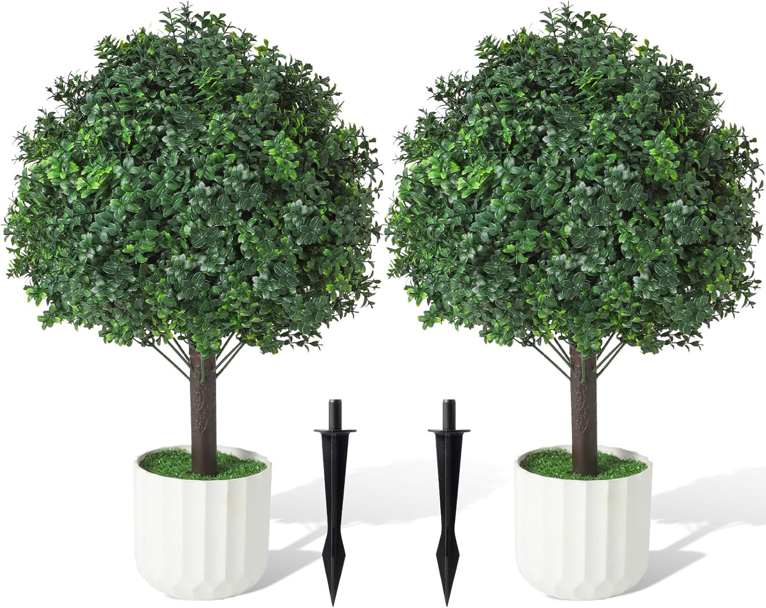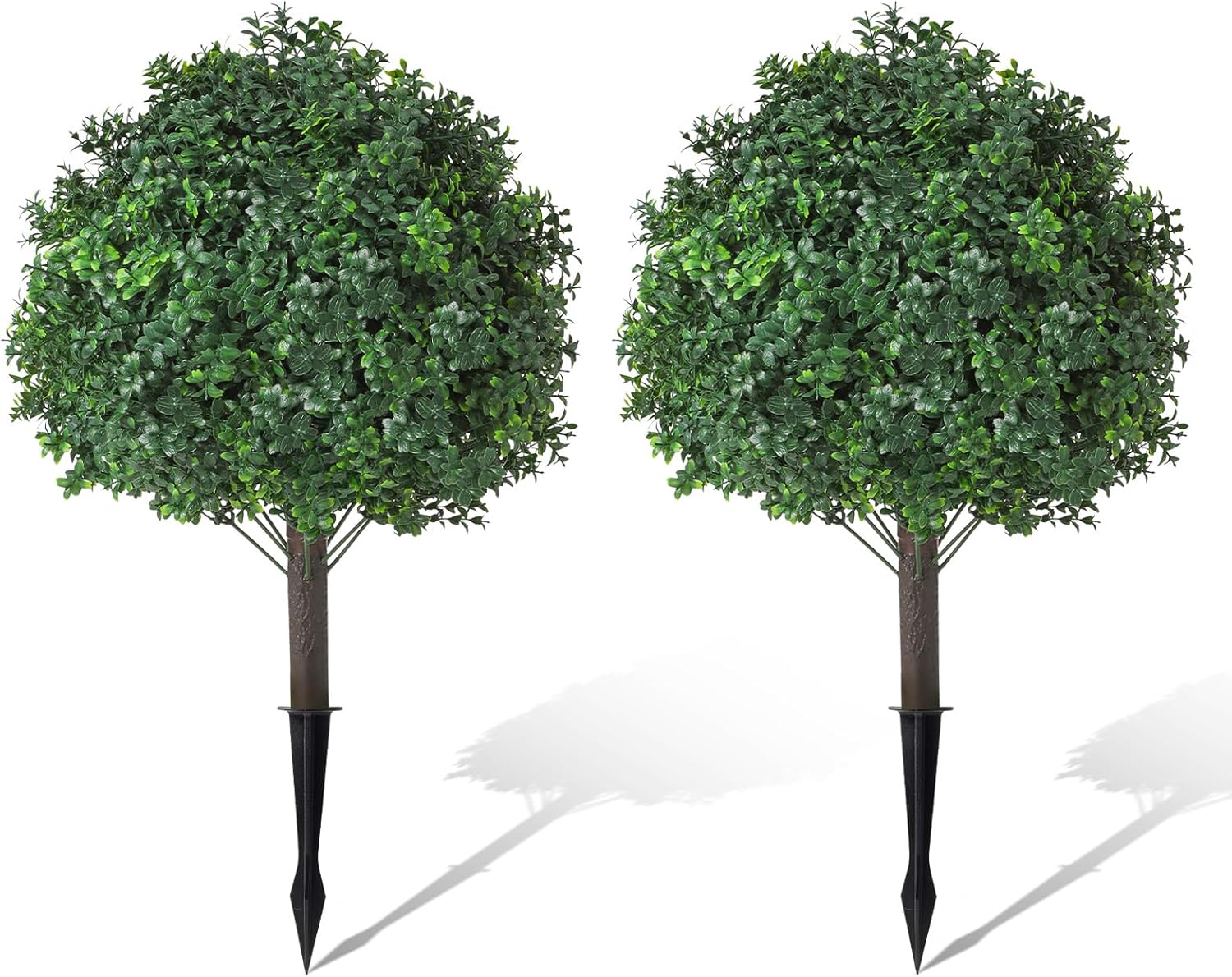 Gladeup Faux Boxwood Balls for Outdoor Planters Topiary Set of 2,UV Resistant Artificial Shrub Bushes Trees with Spike for Porch,Indoor,Garden