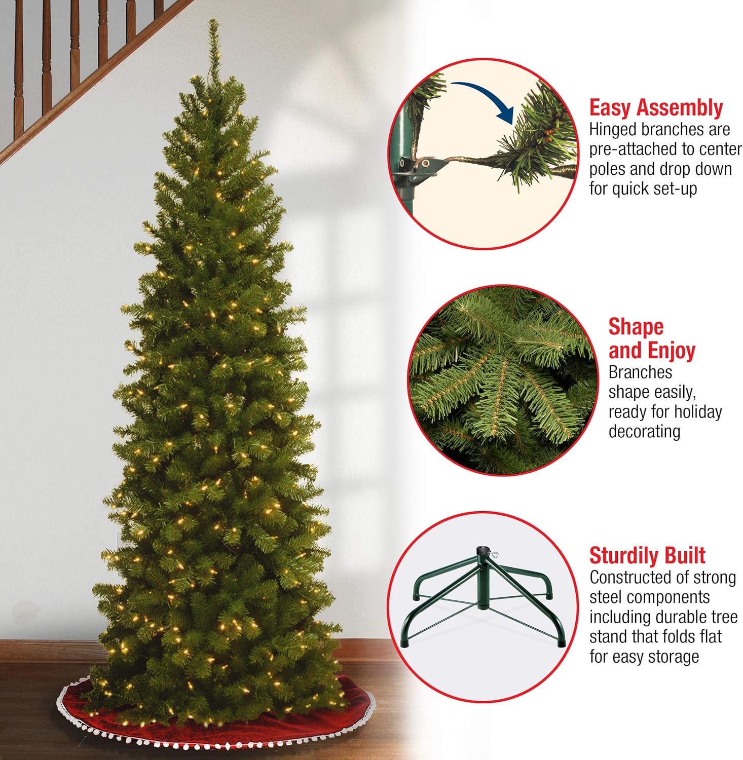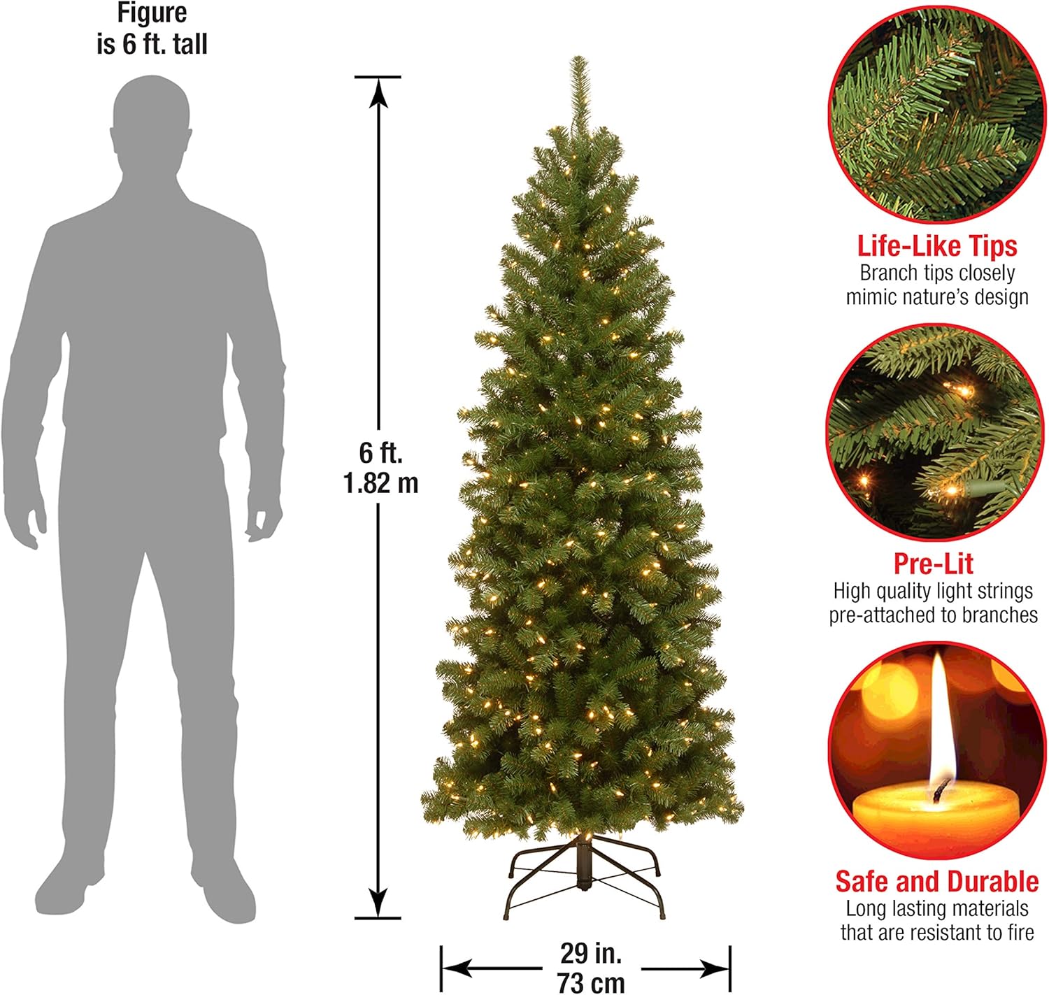 National Tree Company 6 ft Pre-Lit North Valley Spruce Slim Artificial Christmas Tree, 250 Clear Lights, 636 Tips, Includes Stand, Green