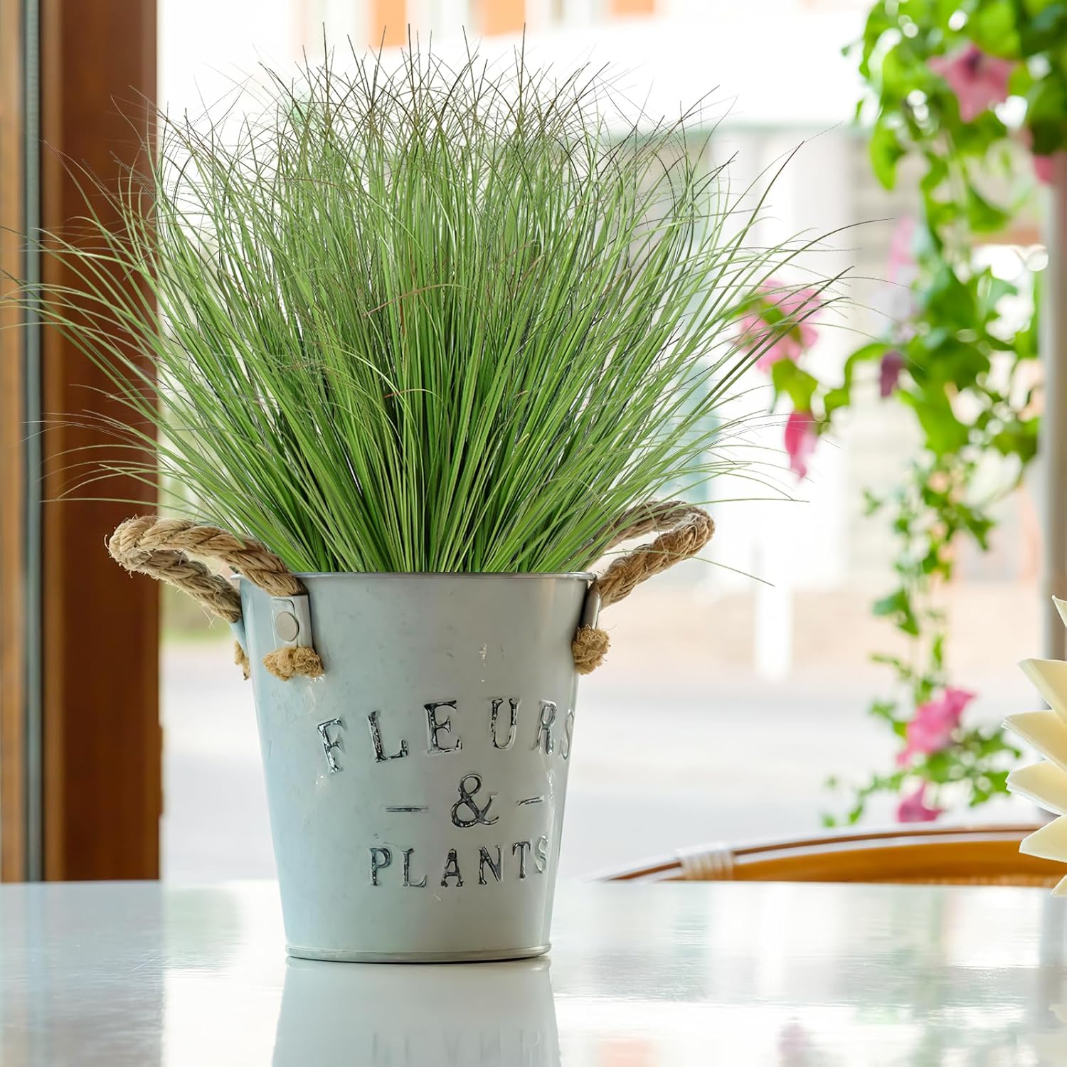 UXORSN 24 Bundles Artificial Plants Onion Grass Outdoor 20 Inch Tall Fake Shrubs Wheat Grass UV Resistant Greenery Stems Faux Bushes Plant for Indoor Outdoor Garden Office Home Decor, Green